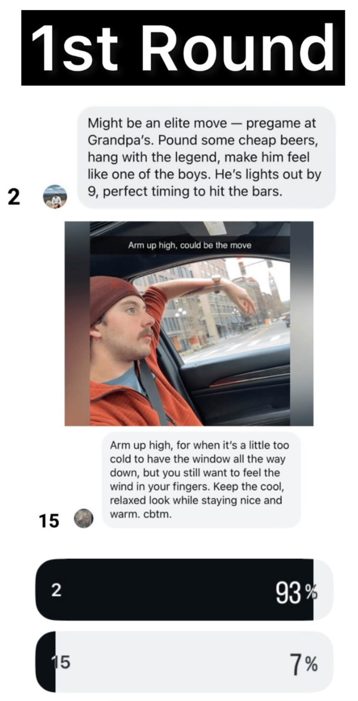 Might be the biggest blowout in Moves Madness history. As stated above, yes, Grandpa Pregame is an all-time Move, but dear mother of God. 93-7. Holy domination.